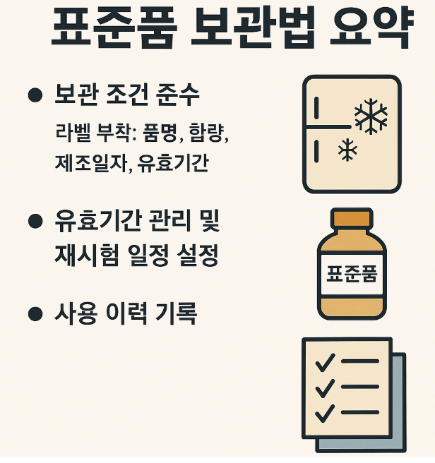 표준품은 민감한 물질이기 때문에 철저하게 관리해야 해요.