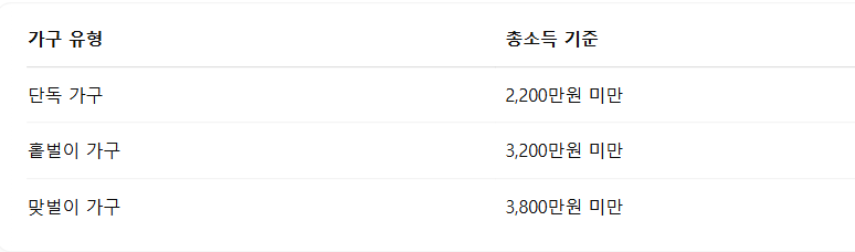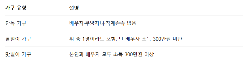 가구 구성, 총소득, 재산 요건을 충족해야 함