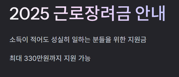 소득이 적어도 성실히 일하고 계신 분들이라면, 최대 330만원까지 지원받을 수 있는 제도입니다.