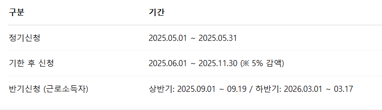 기한 후 신청 시 5% 감액