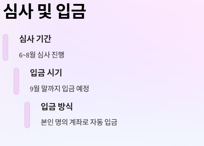 6~8월 심사 후, 2025년 9월 말까지 입금 예정