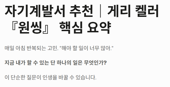 자기계발서 추천 게리 켈러 "원씽" 핵심 요약