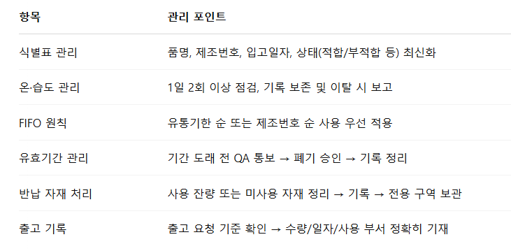 자재는 단순한 물류가 아니라, GMP 품질시스템의 첫 관문입니다.